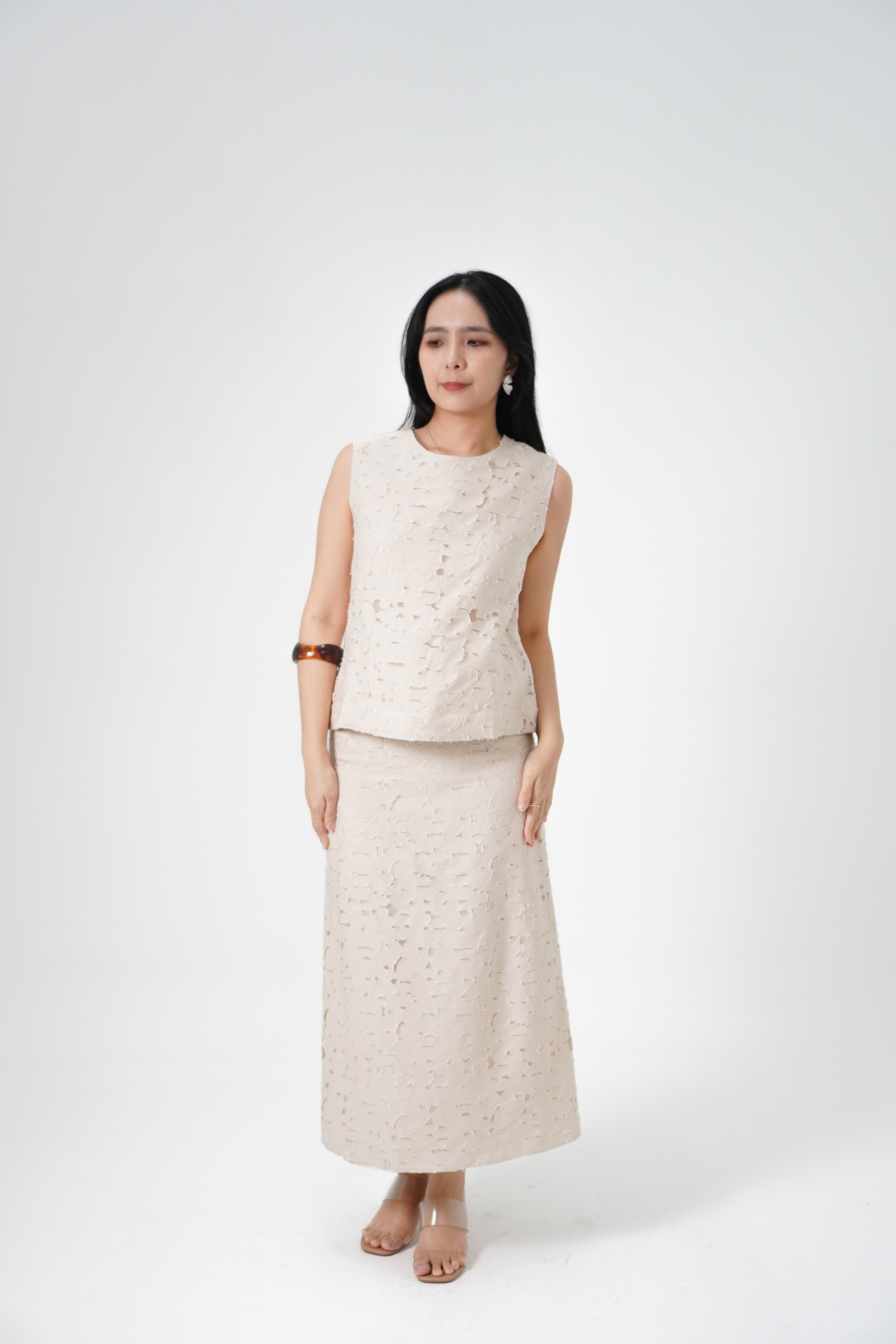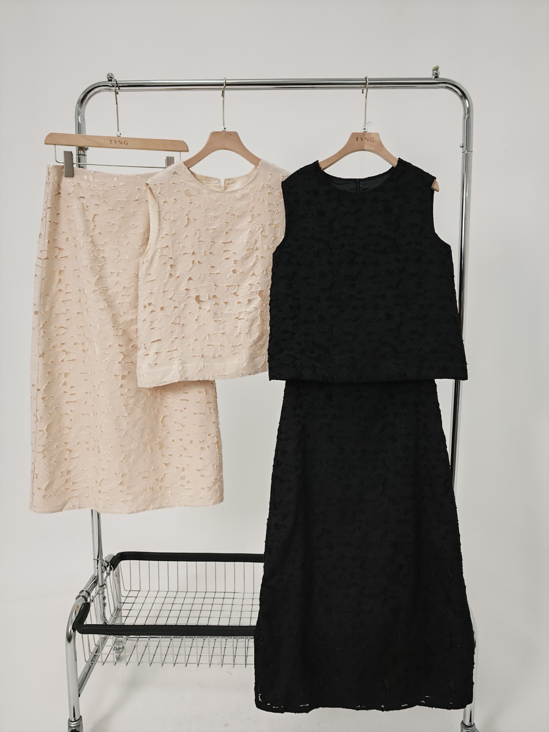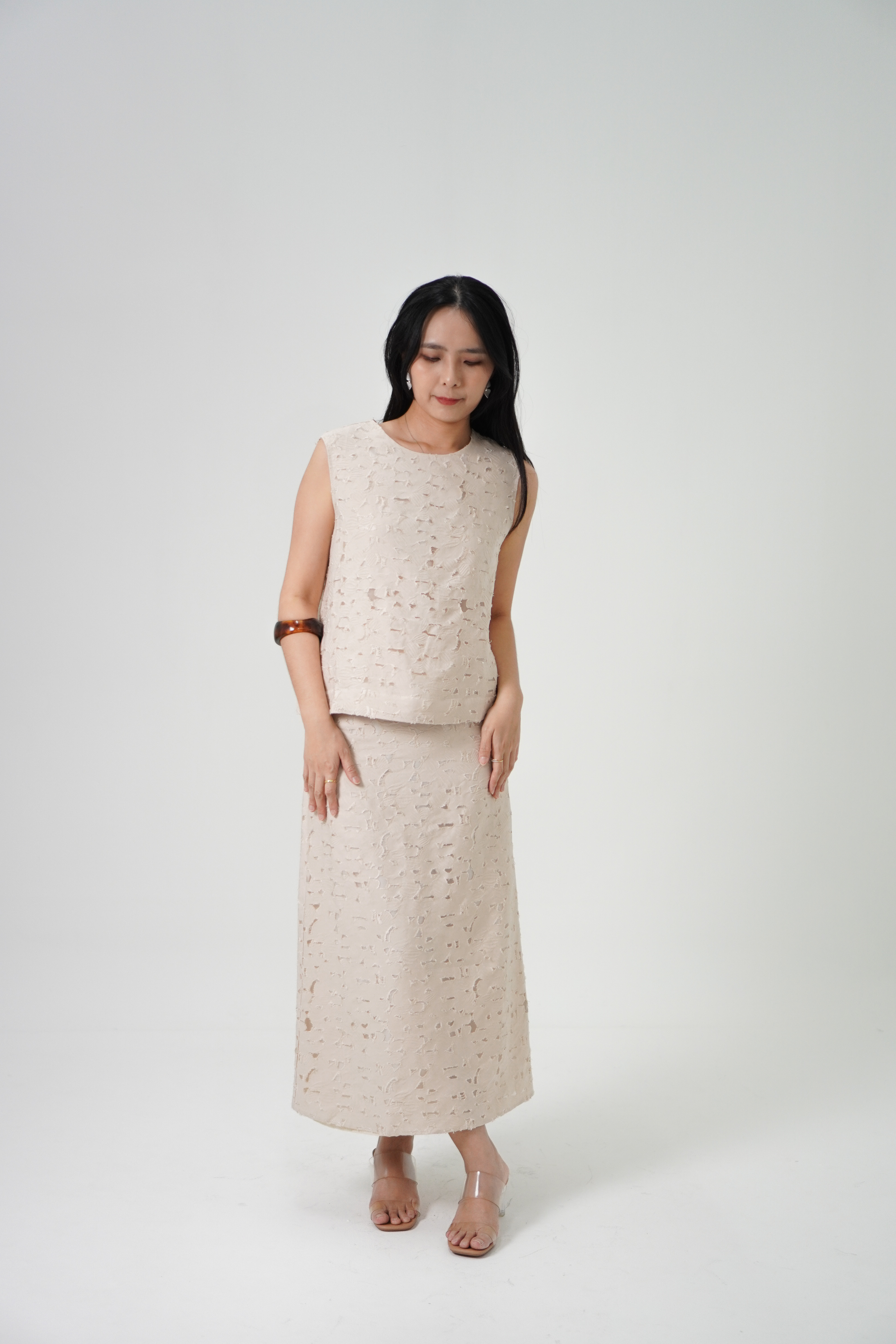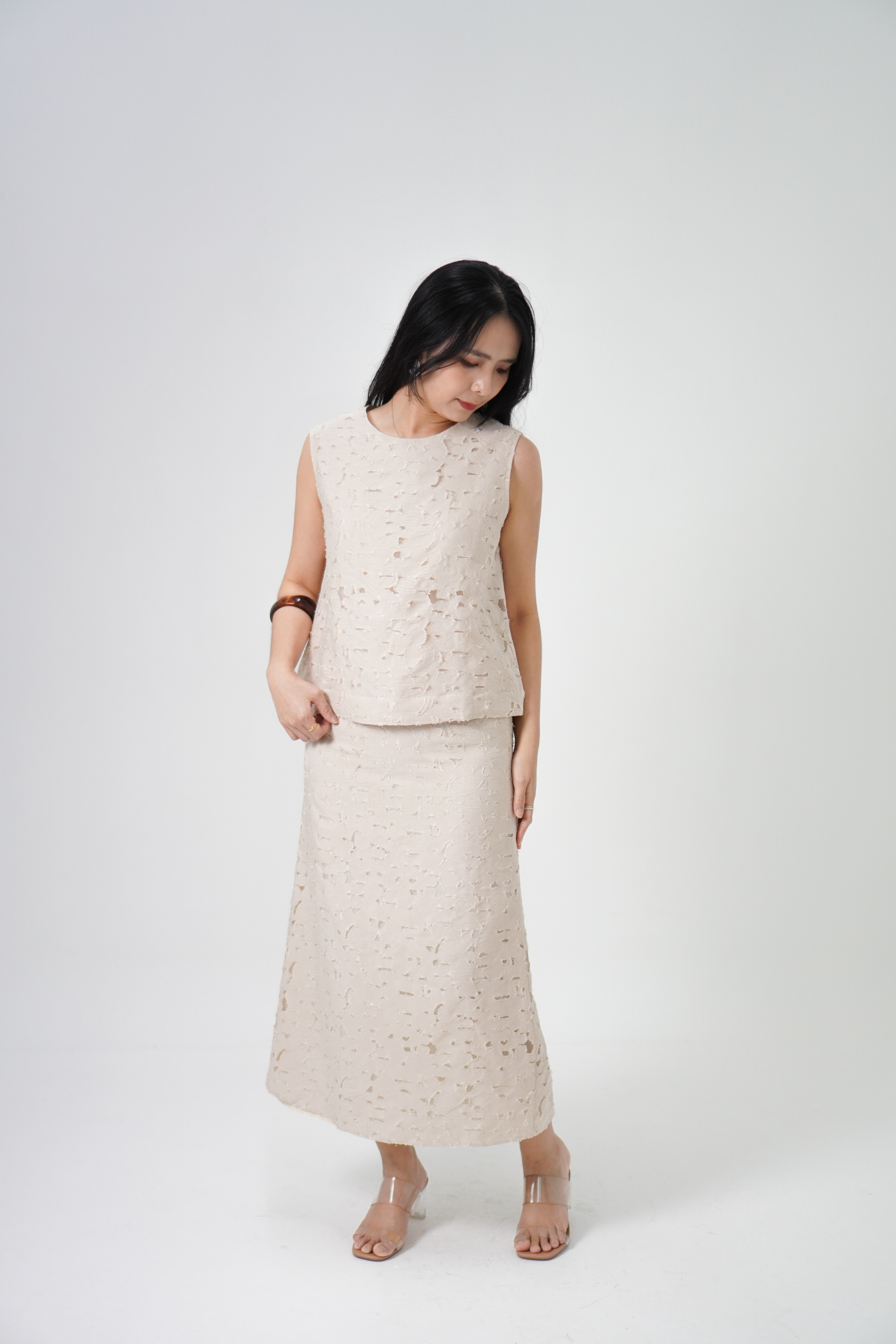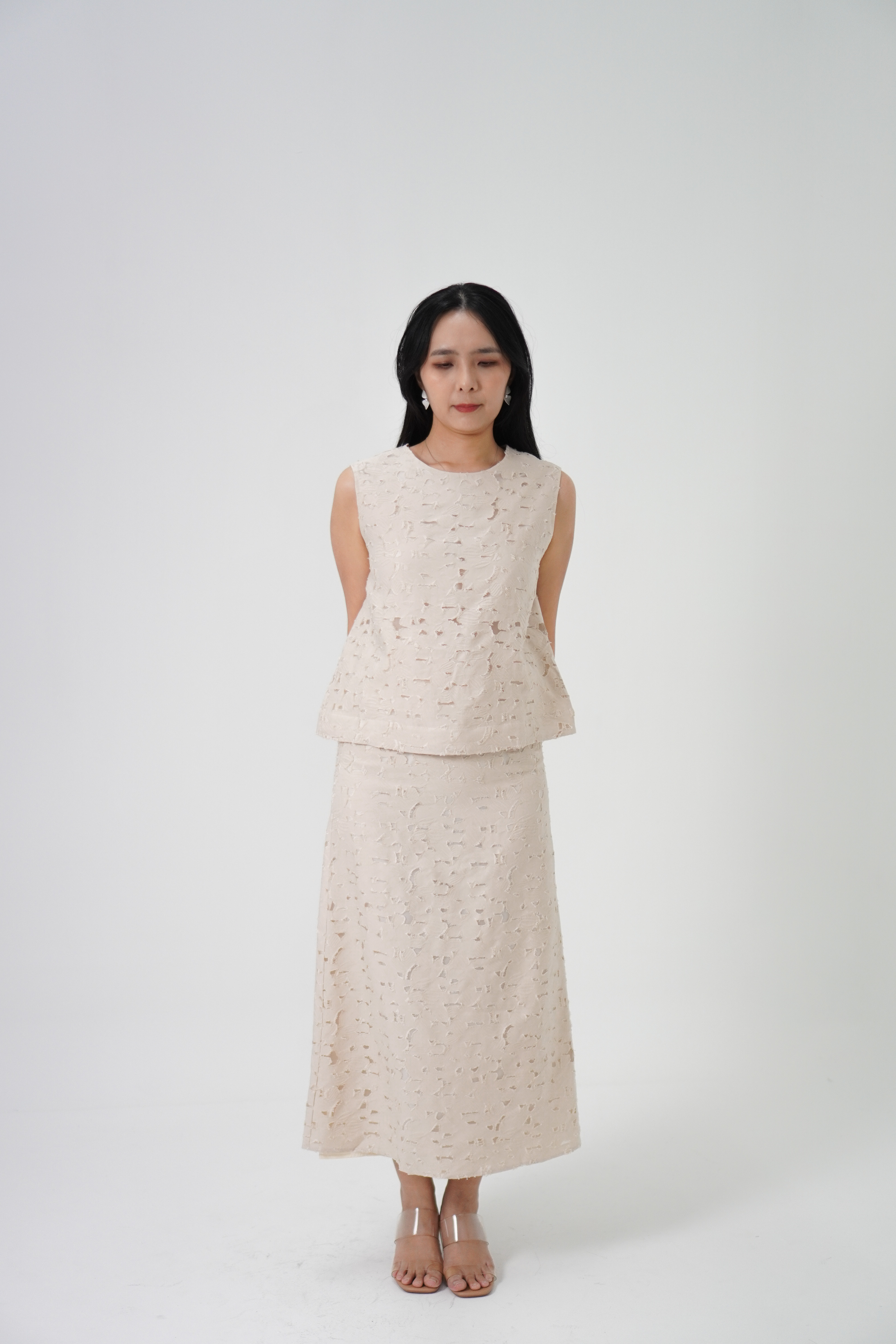 Hidden back zip, fully lined.