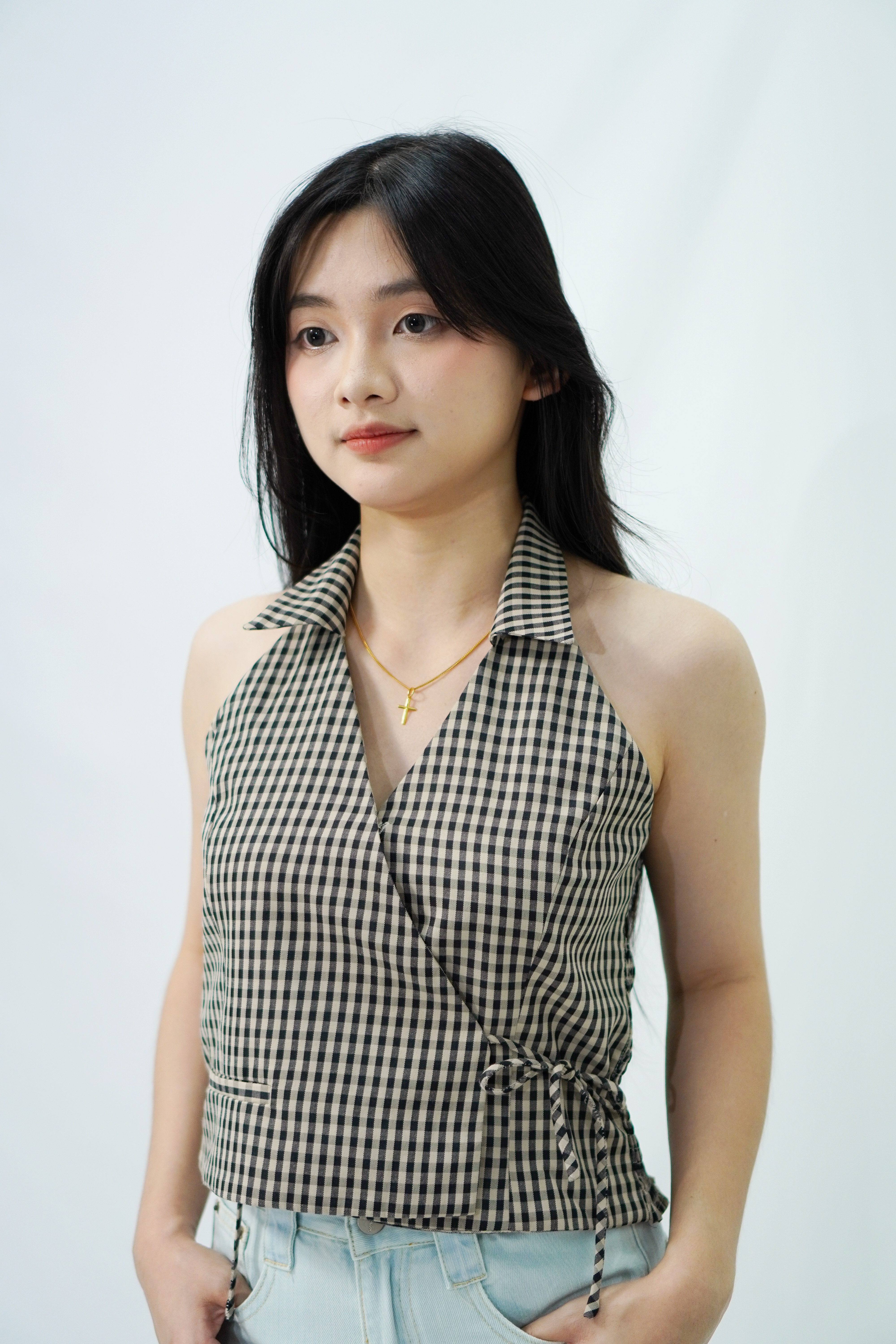 格子挂脖上衣 Checkered Halter Top